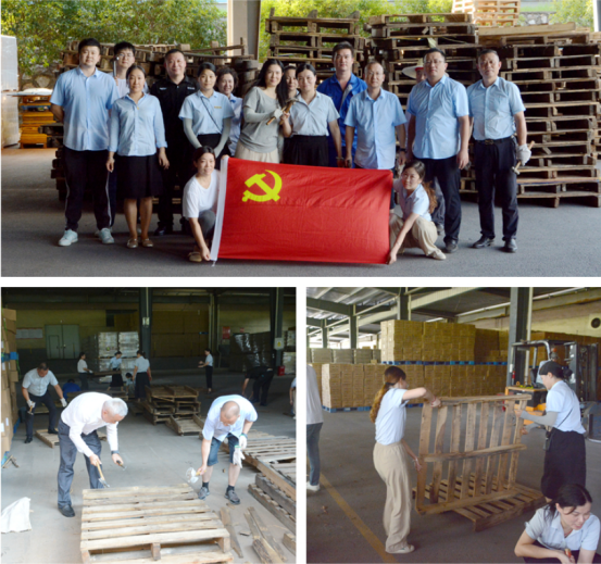 活动现场,全体党员热情高涨、分工协作,纷纷拿起各自维修工具,熟练地将出现松动、脱钉、断裂等问题的废旧托盘进行加固修复,经过数小时努力,一批原本即将报废的托盘被修复一新,即将重新投入生产使用。
