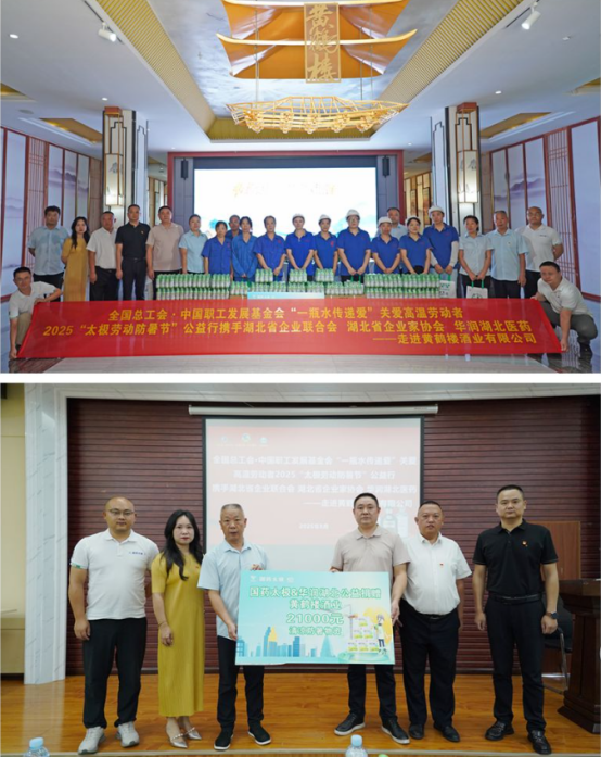 捐赠仪式上,国药太极和华润湖北医药向U乐国际酒业一线员工捐赠了价值21000元的防暑物资,并叮嘱一线员工在工作中注意夏日健康防暑。